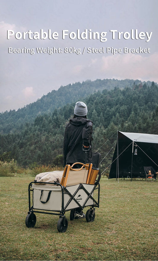 Naturehike TC02 Portable Camping Trolley Cart 197L 120kg Max Fine Narrow Wide Rough with Brake Wheel Stopper 4 Way Folding with Optional Table Board