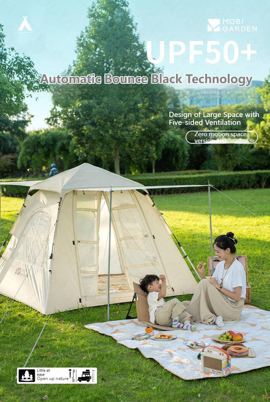 MOBI GARDEN Zero Motion Space Automatic Tent Portable Lightweight 3-4 Persons Quick Open Tent Double Door Design Five Side Ventilation Family Tent