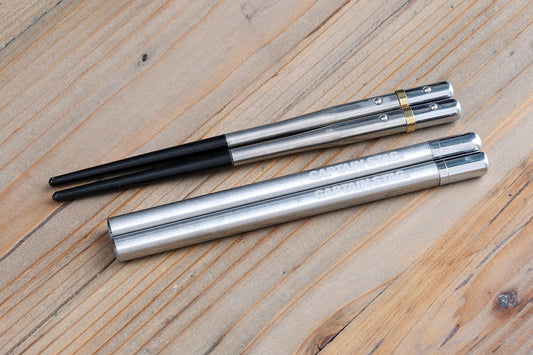 CAPTAIN STAG UH-3050 SHIKA-BASHI Jointed Chopsticks Portable Lightweight Detachable Stainless Steel Ebony Lacquer Premium Camping Cutlery Utensil