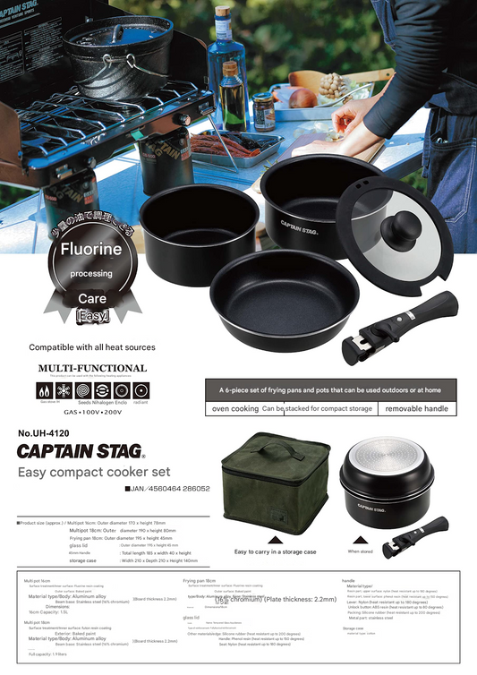 CAPTAIN STAG UH-4120 Compact Cooker Set Portable Black Multi-Functional Cookware With Cover Handle And Storage Bag Cooking Equipment