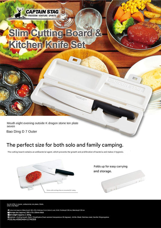 CAPTAIN STAG UH-4709 Slim Cutting Board & Kitchen Knife Set Antibacterial Cutting Board Compact Storage Polyethylene, Stainless Steel Made in Japan