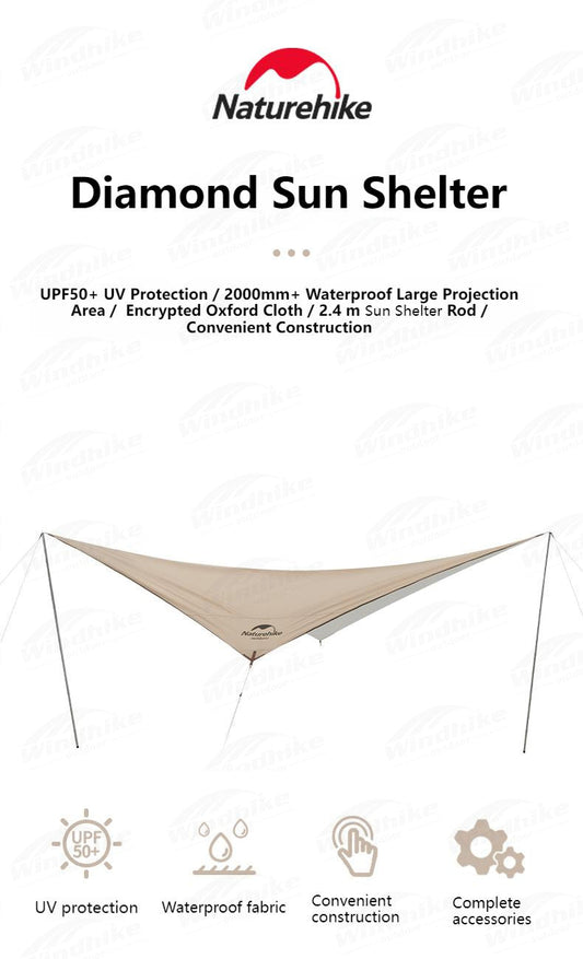Naturehike Diamond Sun Shelter Portable Lightweight 3-4 Person Tarp Camping Outdoor Waterproof Canopy 6x4m 150D Windproof With 2.4m Pole UPF50+
