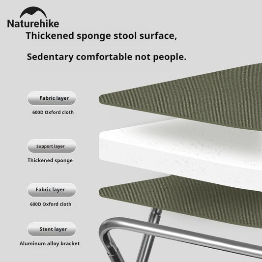 Naturehike Ultralight Folding Stool Portable Mini Chair 7075 Aluminum Alloy Fishing Outdoor Camping Chair 3CM Thick Cushion Seat Load 180kg