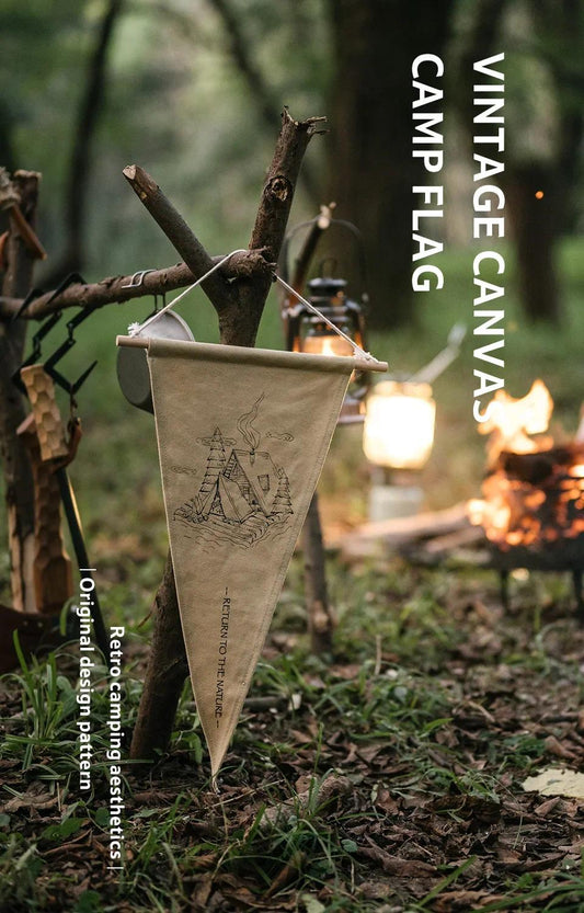 Naturehike Vintage Canvas Camp Flag Triangular Shield Flag Original Pattern Decorative Banner Party Atmosphere Hang Up Pennant Mood Flag Wearable Rope Design