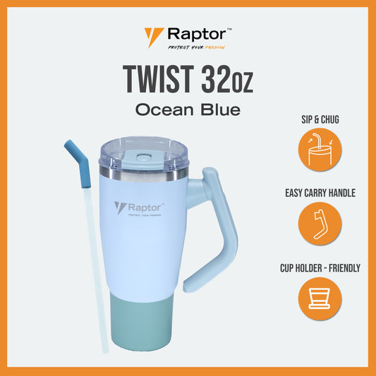 Raptor TWIST 32oz Tumbler Unique Rotating Handle Double-Wall Vacuum Insulation Cup Holder-Friendly Design Rust-Resistant Durability Drinkware
