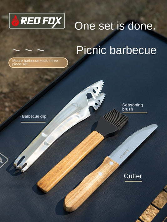 Redfox BBQ Grill Tool Set Portable Lightweight Multipurpose Knife Tong Clip Oil Brush Set For Outdoor Camping Picnic Utensil Barbecue Wood Food Grade