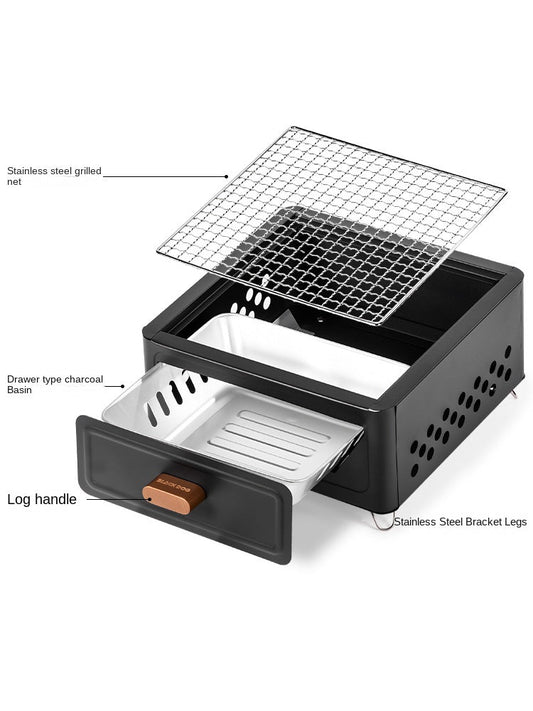 Blackdog Drawer Type Tabletop Charcoal Grill Portable Multipurpose 4-6 Person Desktop BBQ Griller Set Fireplace Outdoor Camping Cooking Equipment