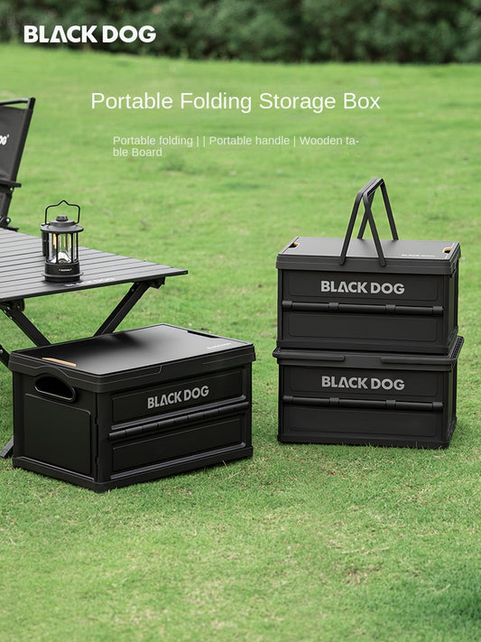 Blackdog PP Folding Storage Box Portable Foldable Multipurpose 23/45L Collapsible Black Storage Container With Wood Table Board Outdoor Camping