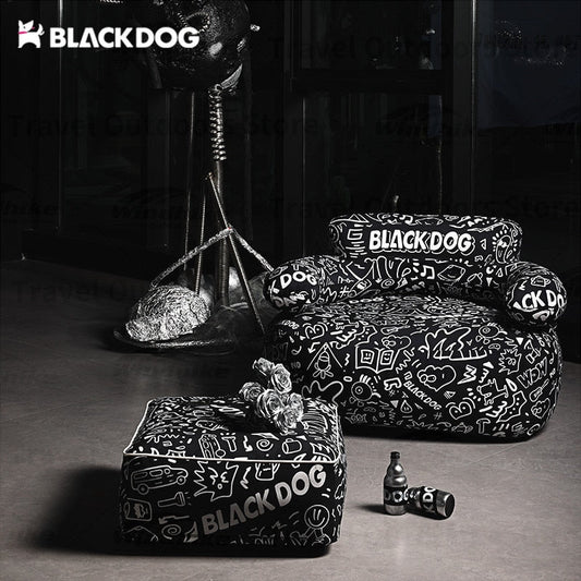 BLACKDOG Inflatable Lazy Sofa Outdoor 1-2 Persons Portable Leisure Graffiti Print Square Stool Folding Air Couch Sofa Folding Home Sofa Set