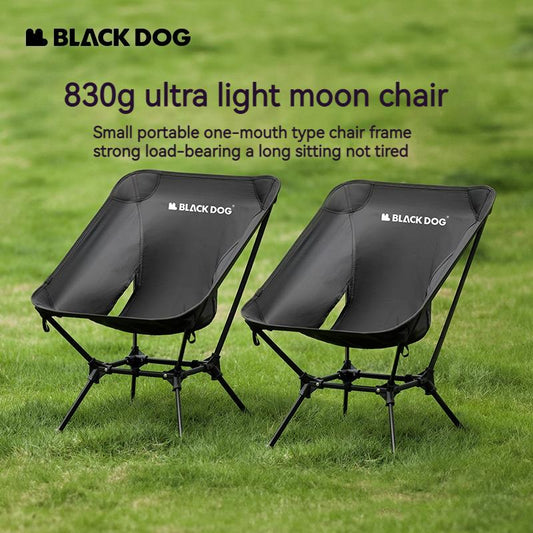 BLACKDOG Black Floating Moon Outdoor Folding Chair Portable Camping 120kg Max Load 600D Oxford Steel Frame Relax Chair with Storage Bag 2.7kg Foldable Ultralight Heavy Duty Black Dog