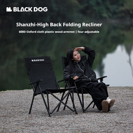 BLACKDOG High Back Folding Recliner Lounger Chair High Backrest Load Bearing 120kg Carbon or Aluminum Steel Wood Armchair 4 Adjustable Outdoor Camping