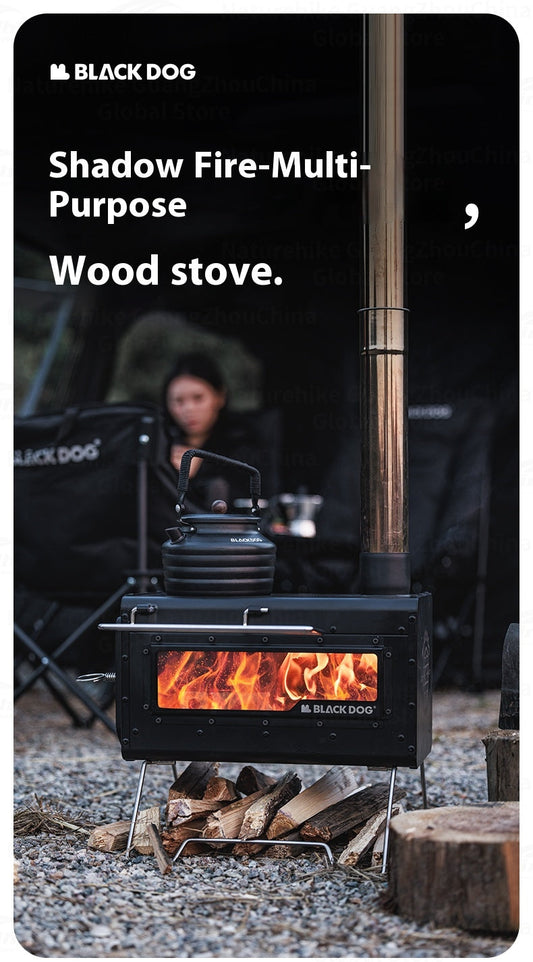 Blackdog FIRE SHADOW Wood Stove Portable Lightweight Wood-Burning Furnace Folding Burner Patio Fireplace 430 Stainless Steel Outdoor Camping Tent