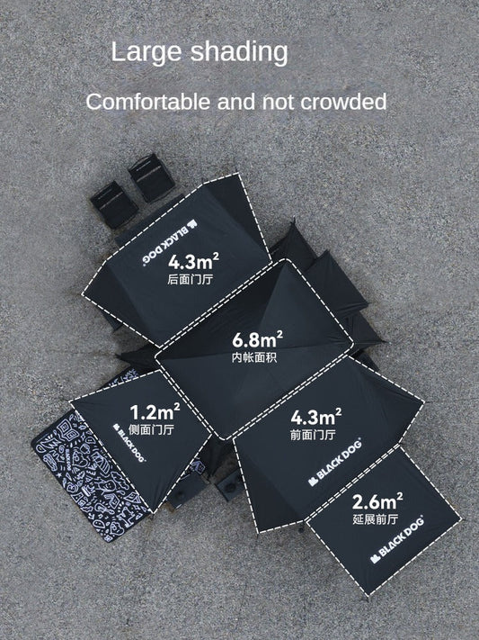 Blackdog MOUNT HAVEN 6.8 Cabin Style Black Tent Large 19.2m² Space for 4-5 Person Titanium Black Coated Waterproof shanting