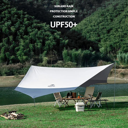 Naturehike Outdoor Medium | Large Canopy Awning Tarp with 2 Poles Camping Glamping Sun Shade Rain Fly Tent Shelter UPF50+ Camp Portable Rising Sun Hexagon 150D Windproof Waterproof Nature Hike