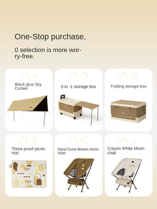 Naturehike Go With One Box Camping Set Accessories Equipments Package Portable Ultralight Storage Box Tarp Canopy Awning Table Moon Folding Chair
