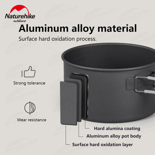 Naturehike Portable Outdoor Tableware Set 4 in 1 Aluminum Alloy Pot Storage Ultralight Glamping Tableware Cookware Set Travel Pot Kettle Sets