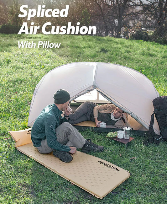 Naturehike SINGLE | DOUBLE Spliced Air Inflate Sleeping Mat Pad with Inflatable Pillow 2.5/3cm Thick Outdoor Portable Camping Tent Bed Automatic Foam