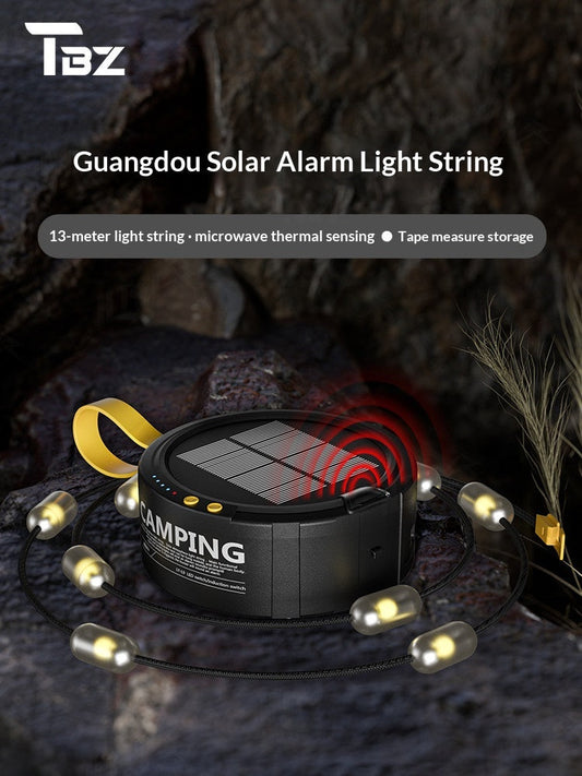 TBZ Solar Alarm Light String Multipurpose 13M Atmosphere Lamp Solar Charging Thermal Detection Sensor Alarm 300 Lumens 3600mAh Battery Up To 25H Outdoor