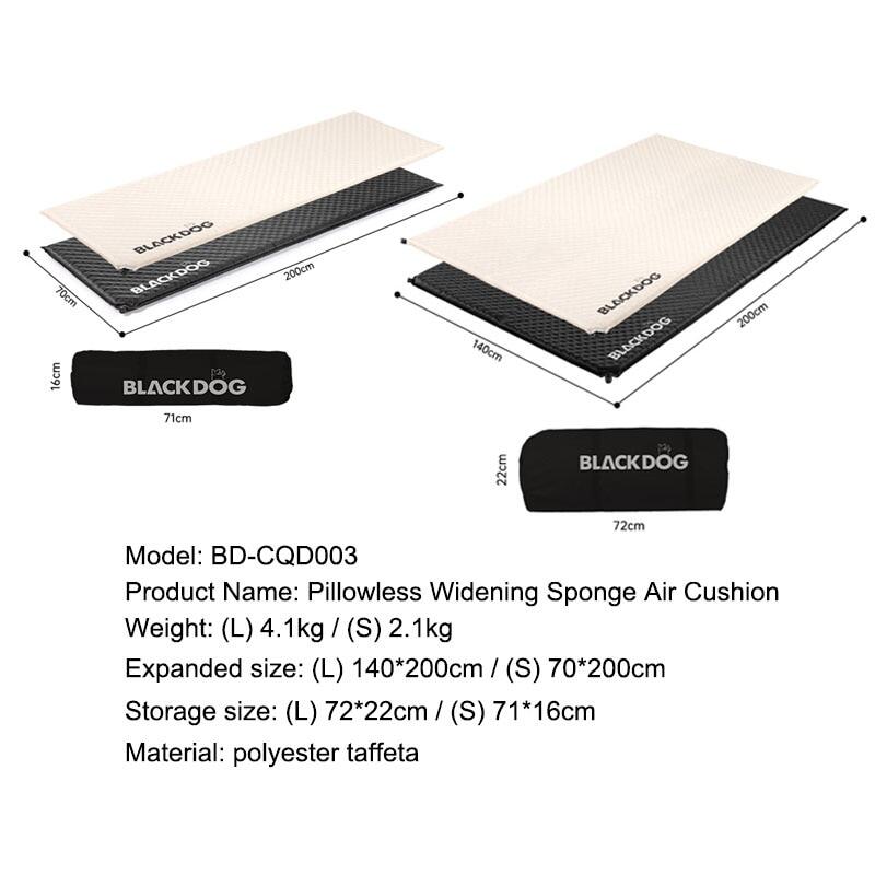 BLACKDOG Atomatic Inflatable Cushion 5CM Thick Foam Auto Self Inflate Single Double Camping Sleeping Pad Mattress Bed Tent Mat Comfortable Black Dog