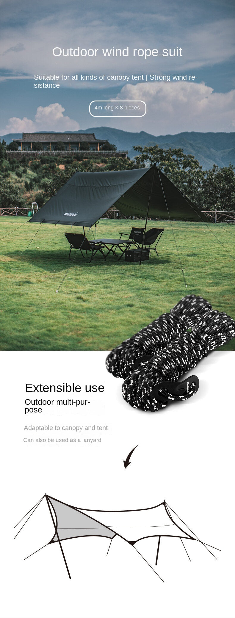 Product Name: Black Wind Rope 8pcs 4m Set