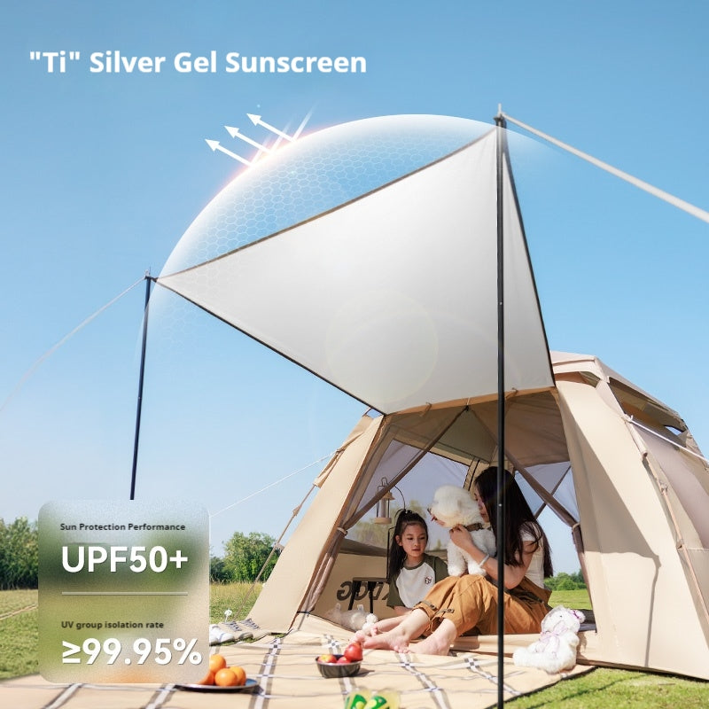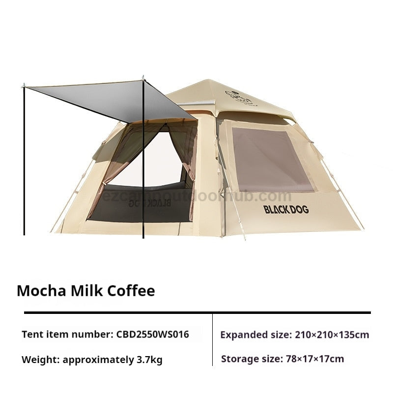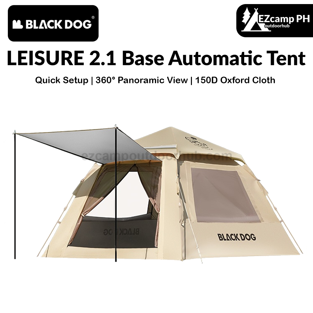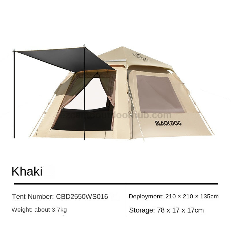 Blackdog LEISURE 2.1 Base Automatic Tent Portable Foldable 2-4 Persons Quick Open Picnic Tent 2 Door Window Design Waterproof Camping Sunshade Silver Coated