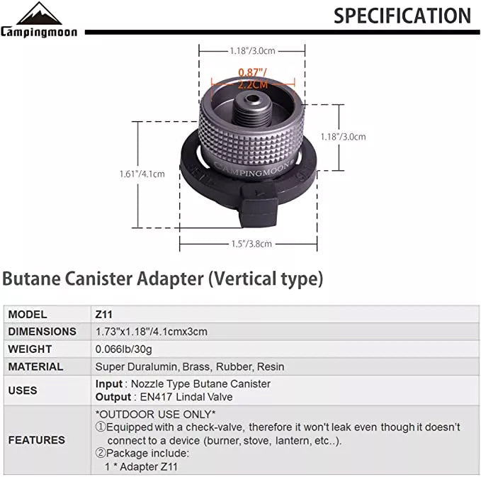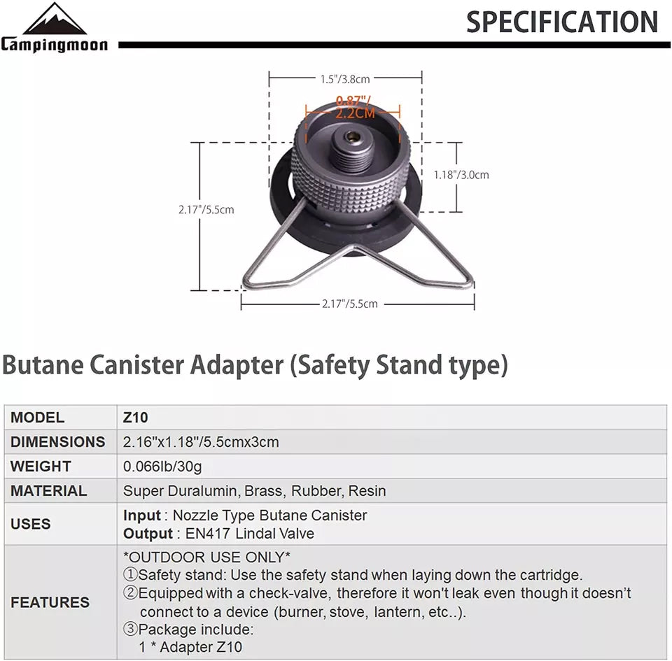 CAMPINGMOON Butane Gas Converter Adapter Nozzle Type Canister Tank to Camping Screw Type Lindal Adaptor Plug with Optional Stand Bracket Mount