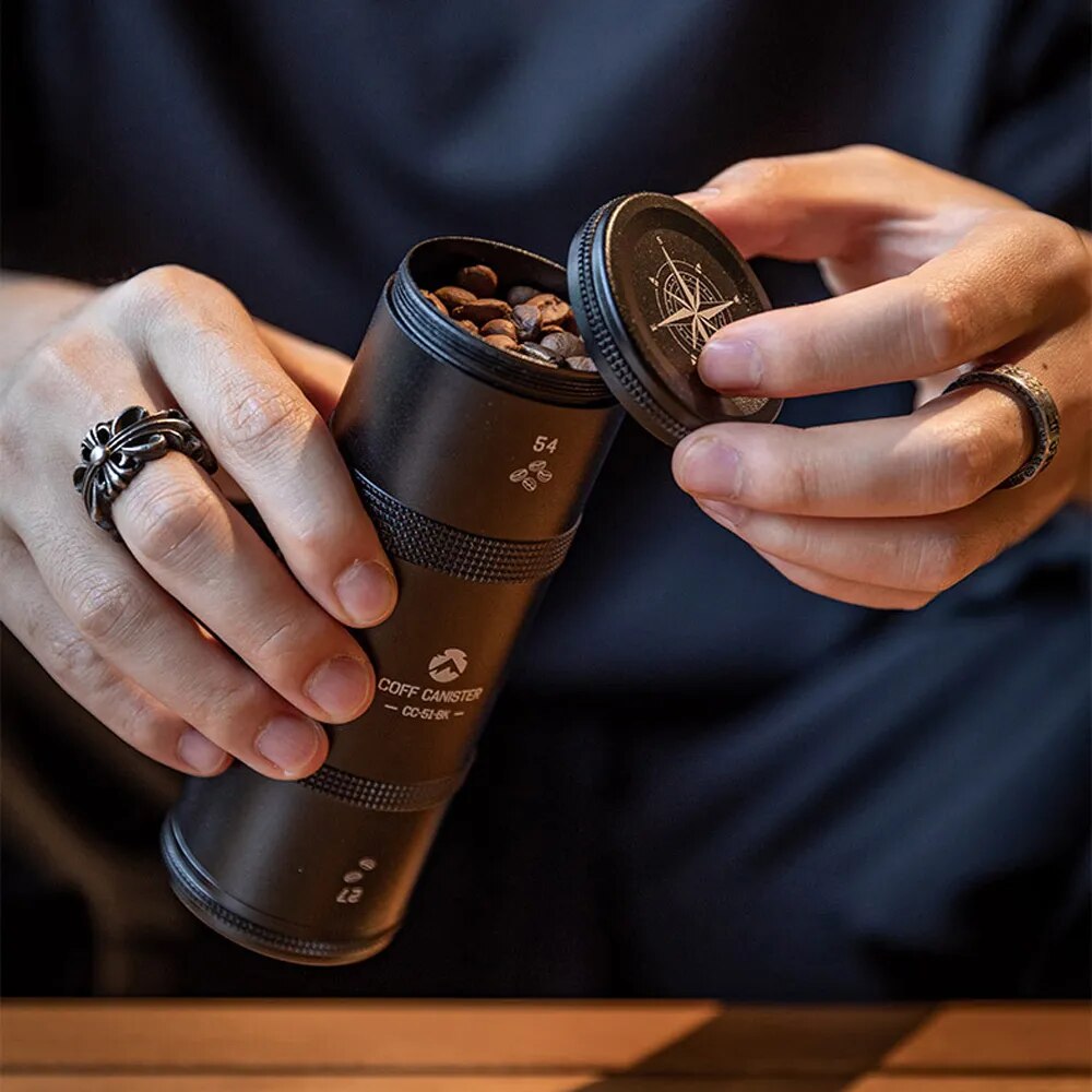 This is an aluminum coffee can, featuring a dual-layer design that allows you to store both coffee and tea separately. Made from wear-resistant aluminum alloy, this can provides perfect protections against moisture, ensuring that your coffee and tea stay drying and flavorful for longer.
