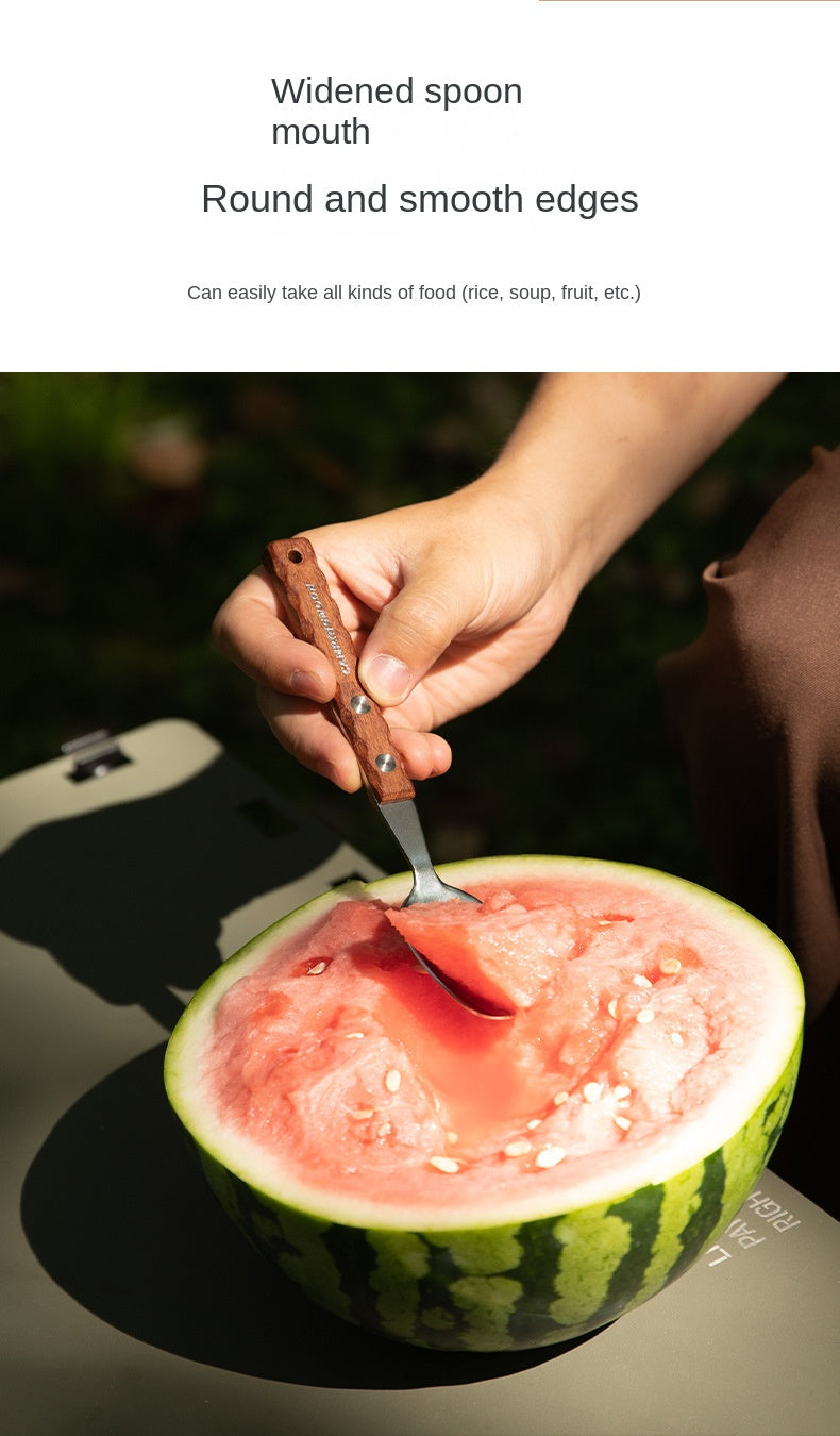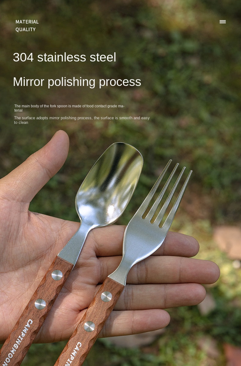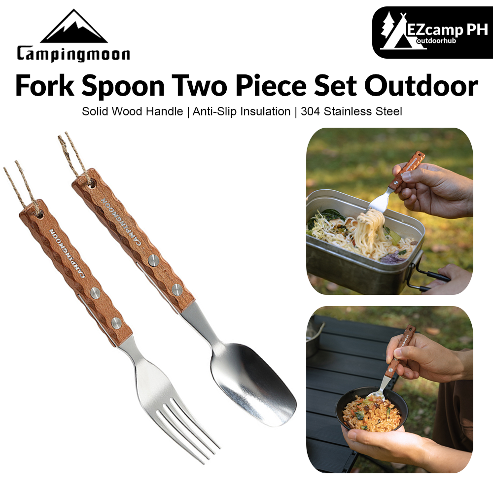 Campingmoon CS-23 Fork Spoon Two Piece Set Outdoor Portable Stainless Steel Solid Wood Handle Tableware Fork Spoon Wooden Handle Hanging Design