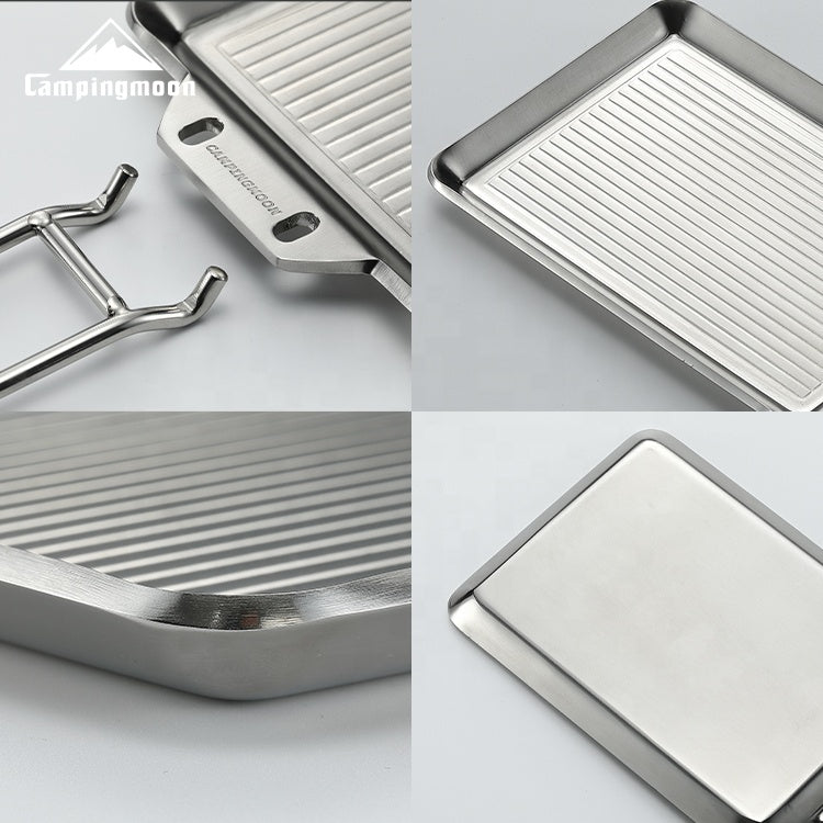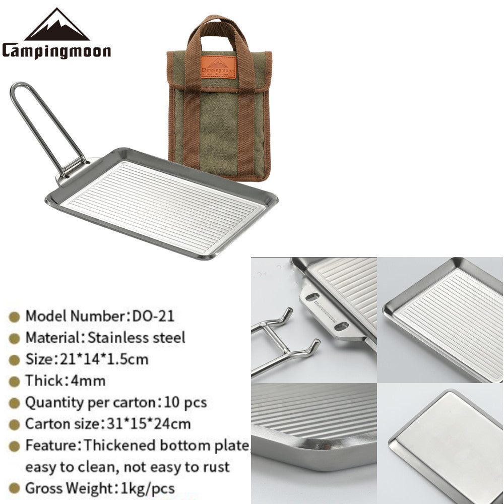 CAMPINGMOON DO-21 DO-2117 Stainless Steel Frying Pan Outdoor Cookware Pot Utensil Deep Fryer With Bag Optional Cover Reversible Detachable Handle