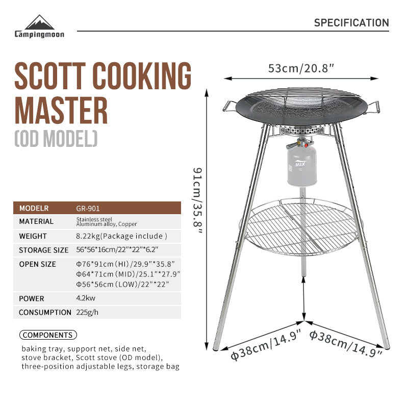 Campingmoon GR Series Skottle Grill Portable Lightweight Party BBQ Griller Standing Grill Butane Gas Stove Tripod Courtyard Outdoor Camping
