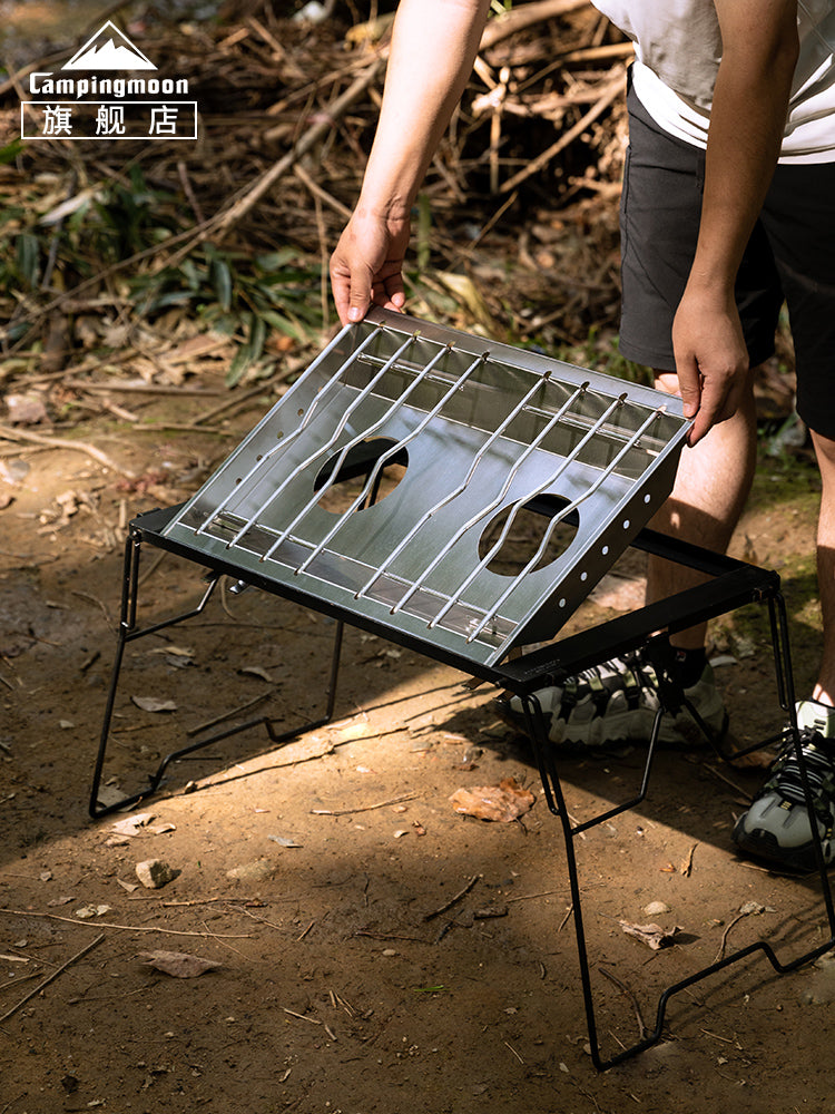 Campingmoon IGT Korean Style Double Burner Stove Top 2 Unit IGT Size Integrated Grill Table Rack Dual Stainless Steel Butane Gas Stove Windproof