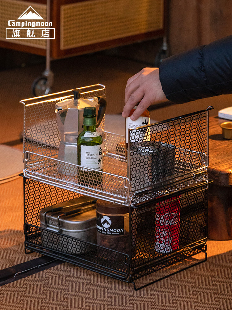 Campingmoon IGT Storage Rack Foldable Multipurpose 1 Unit Integrated Grill Table Folding Drawer Mesh Net Stackable Outdoor Camping Steel Storage Box