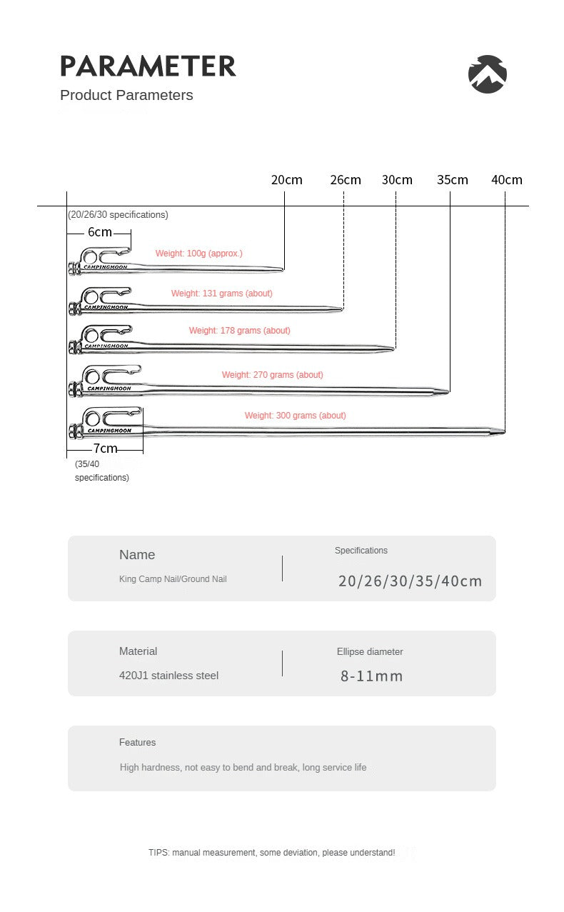 Campingmoon K Series Tent Peg Stakes Pure Forged 420 Stainless Steel Ultra Heavy Duty 20 26 30 35 40 CM Outdoor Camping Canopy Ground Nails Tent