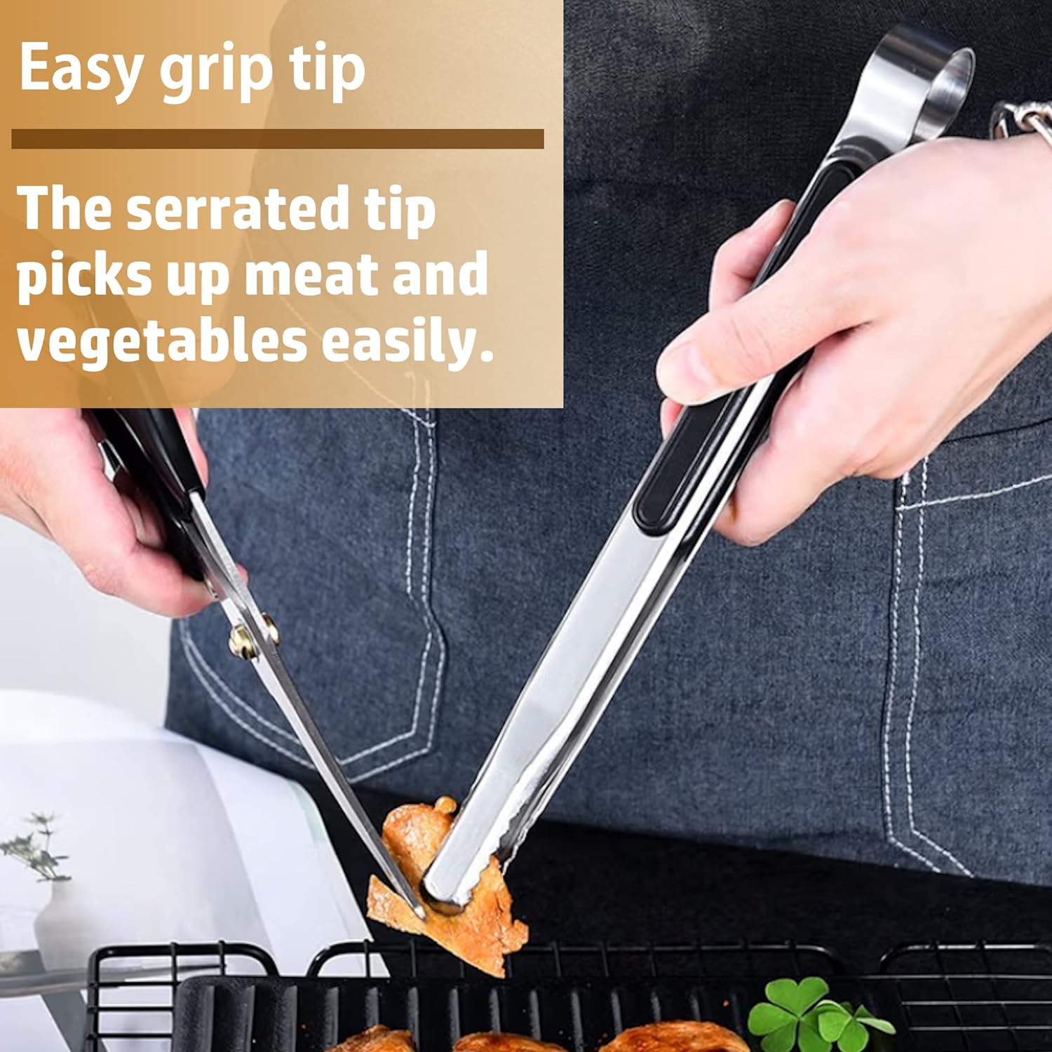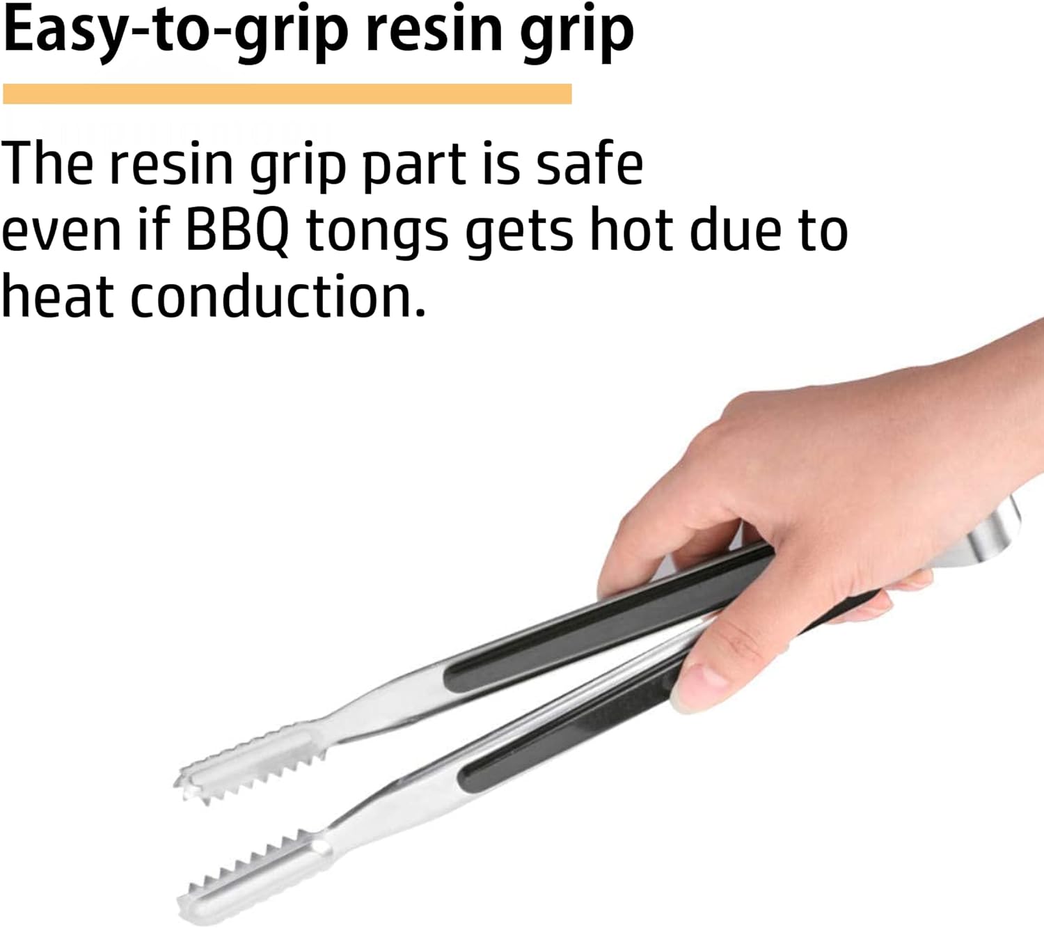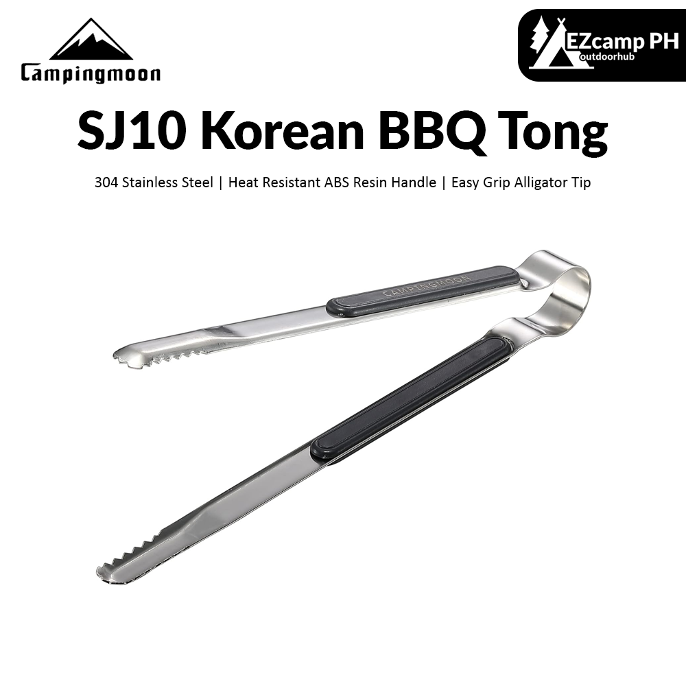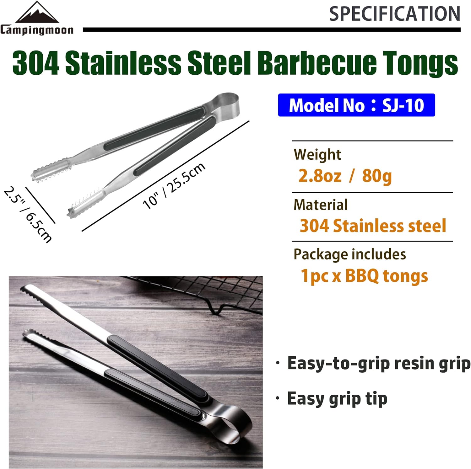 CAMPINGMOON Korean BBQ Stainless Steel Tong Outdoor Camping Picnic Charcoal Grill Clip SJ-10 Barbecue Cooking Equipment Utensil Accessories Heat Resistant Resin Handle Camping Moon