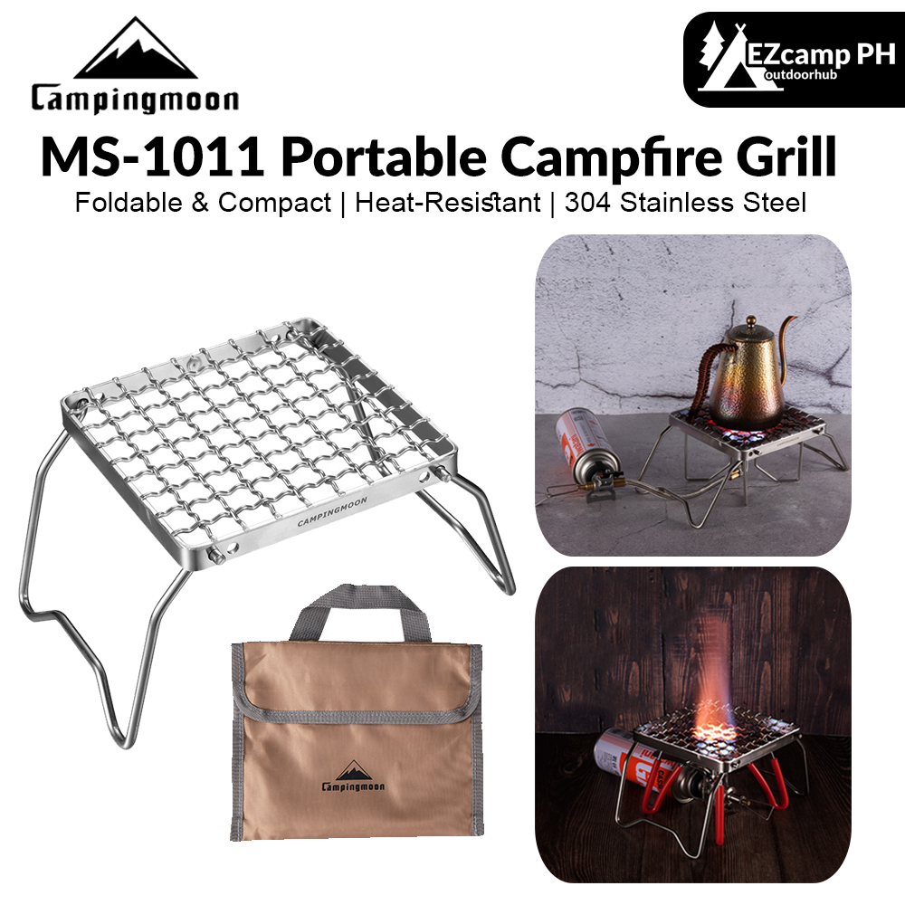 CAMPINGMOON MS-1011 Portable Campfire Grill Folding Encrypted Barbecue Net Over Fire Split Stoves 304 Stainless Steel Grid Wire Camping Hiking Picnic Travel Heavy Duty Original Camping Moon