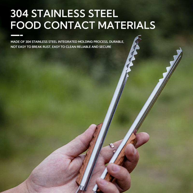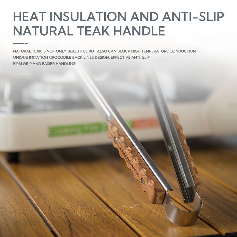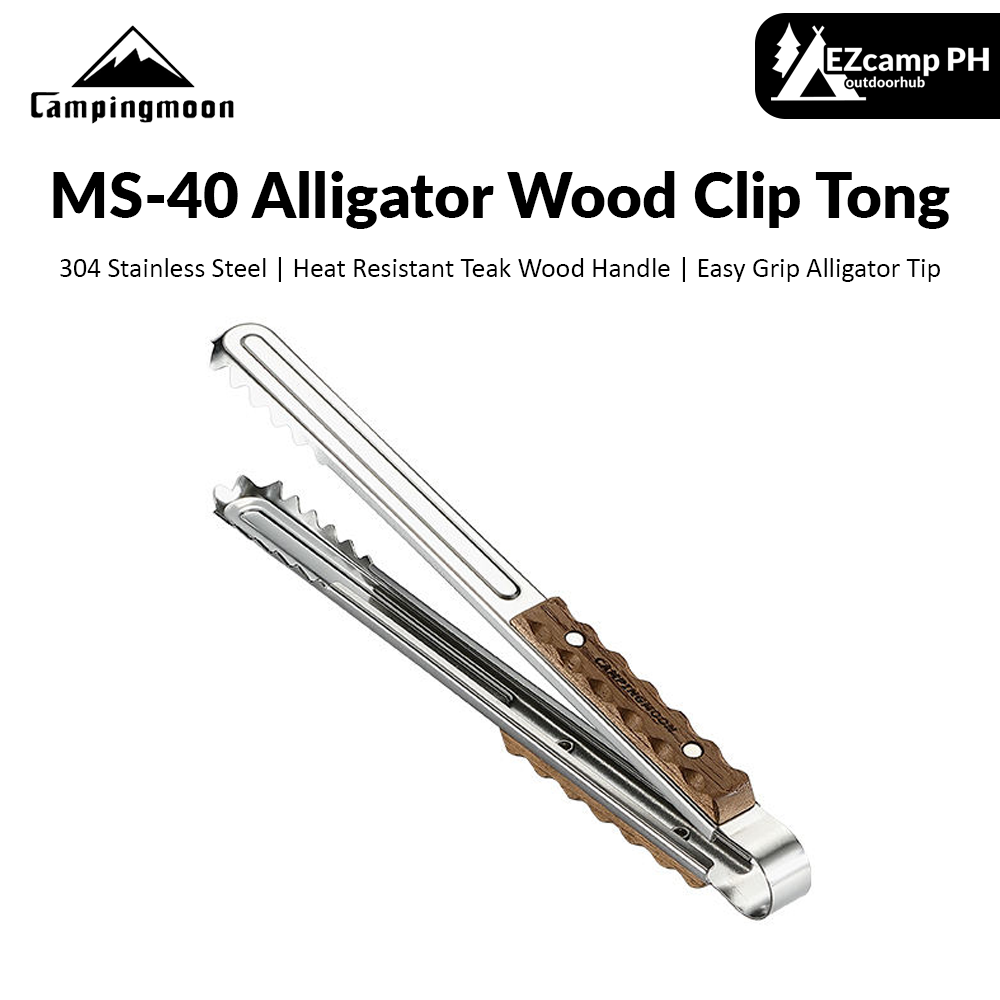 Campingmoon MS-40 Alligator Wood Clip Outdoor BBQ Grill Stainless Steel Tong Premium Teak Wood Heat Resistant Handle Camping Picnic Charcoal Grilling Equipment Utensil Camping Moon