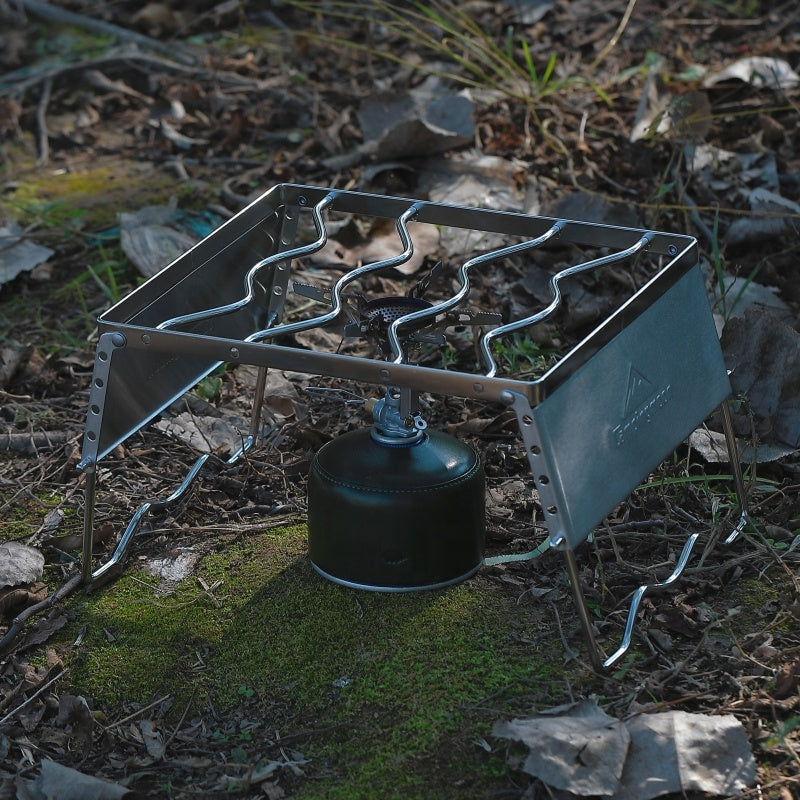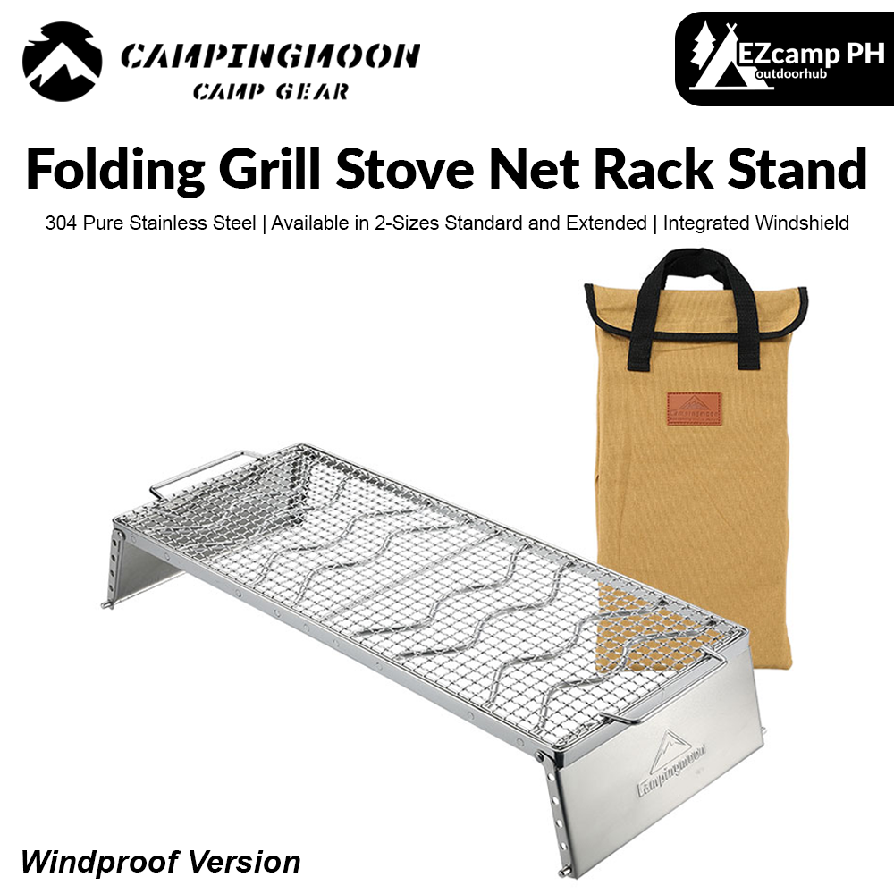 CAMPINGMOON MSW-1018 MSW-1019 Folding Grill Stove Net Rack Stand Windproof Version BBQ Charcoal Butane Stove Grill Mount Bracket Built-in Windshield