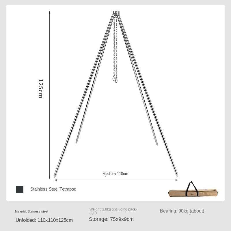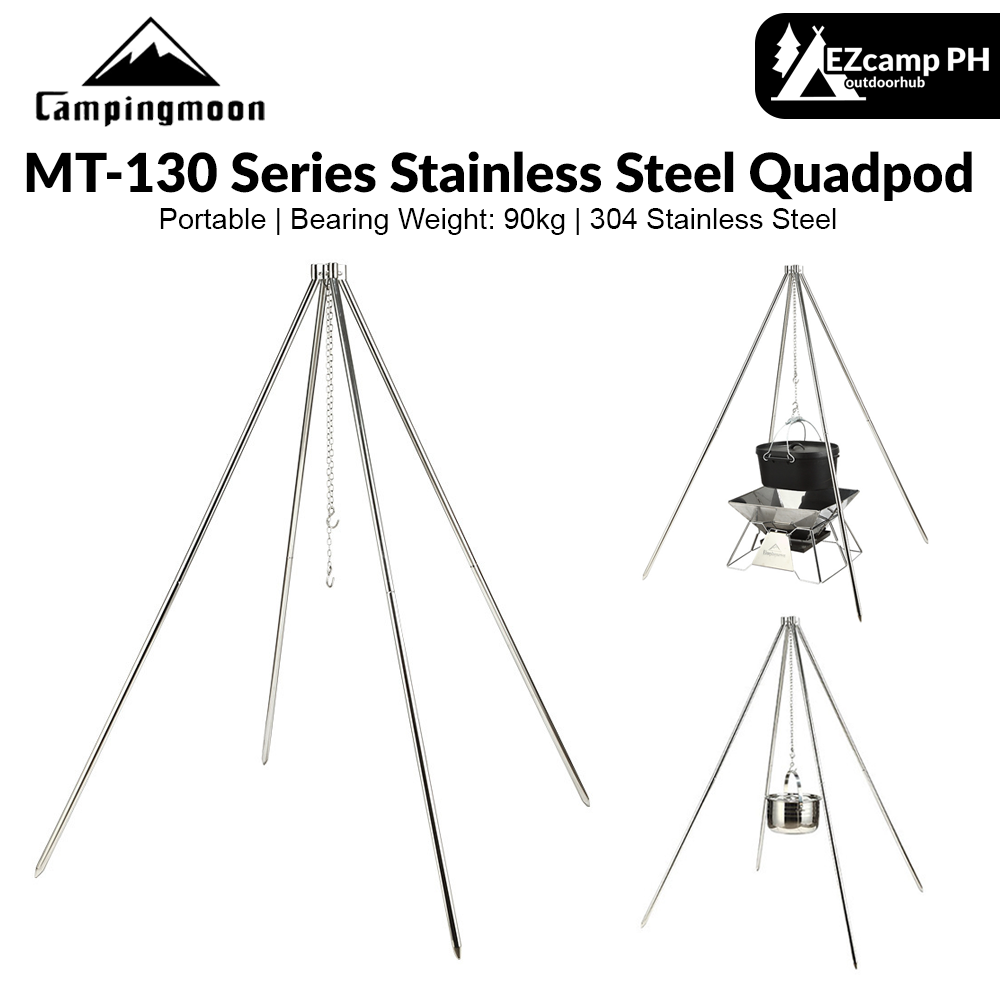 Campingmoon MT-130 Stainless Steel Quadpod Large Four-legged Dutch Pot Bracket Hanger Heavy Duty Cooking Tetrapod Hanging Pot Cookware Utensil