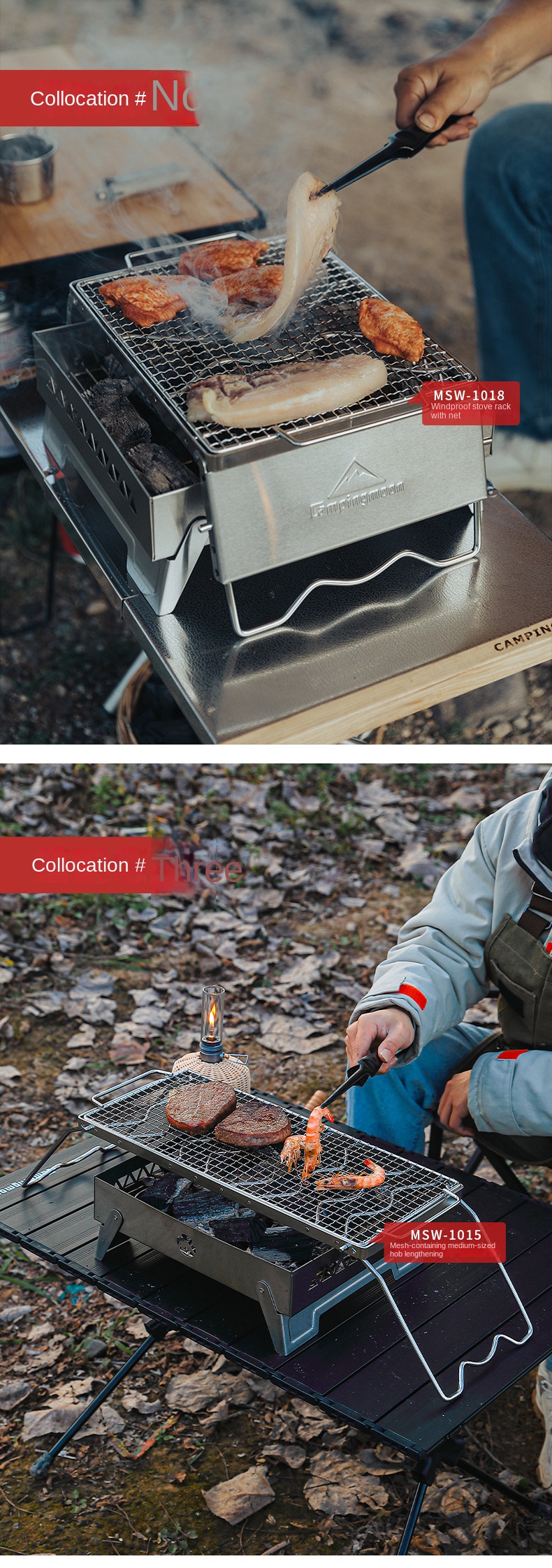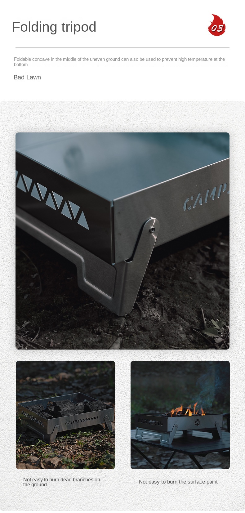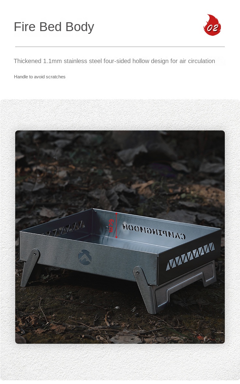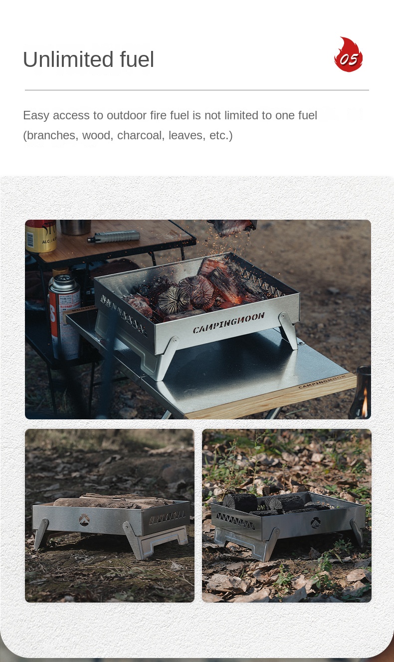 Campingmoon MT-6-LT Stainless Steel Fire Bed Portable Multipurpose Firewood Bonfire Charcoal BBQ Grill Tabletop Burning Platform Outdoor Camping