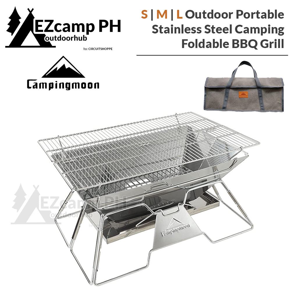 CAMPINGMOON Outdoor Portable Camping BBQ Grill Pure Stainless Steel X-Mini MT-2 MT-3 Charcoal Fire Wood Pit Bonfire Multi Purpose Small Medium Large