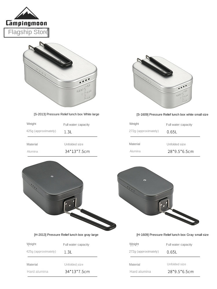 CAMPINGMOON S-1609 H-1609 S-2013 H-2013 Portable Lunch Box Cookware Upgraded Aluminum Alloy Ultralight Utensil Lunchbox Non-Stick Soup Frying Pan Pot