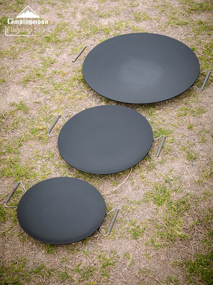 Campingmoon Stone Textured Grill Pan Non-Stick 3 Layer Steel Enamel Coated Frying Pan Baking Tray Outdoor BBQ Skottle Stove Top Cookware