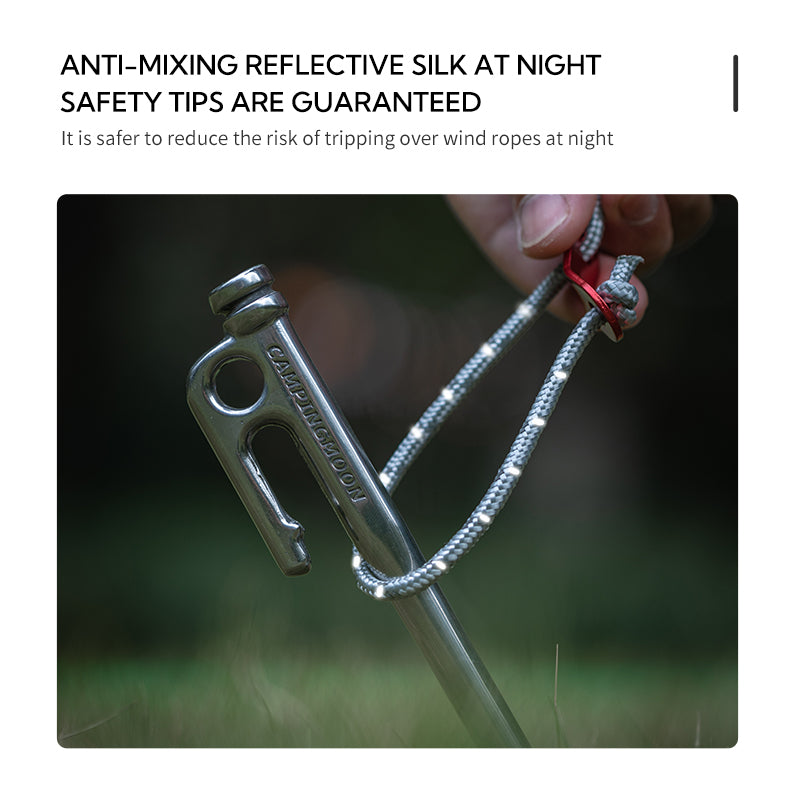 Campingmoon Tent Wind Rope Tarp Reflective Guy Lines with Adjustable Aluminum Buckle Tensioner Awning Canopy Pole Heavy Duty Polyester Fiber String Outdoor Camping Moon