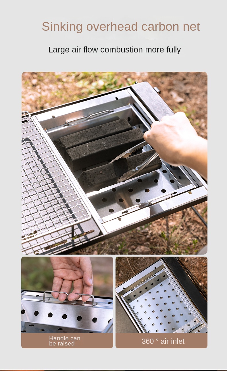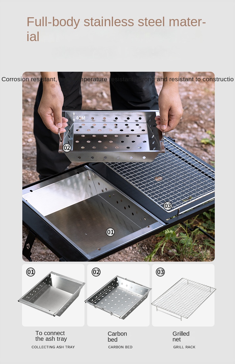 Campingmoon UG-1 1 Unit IGT Charcoal Grill Portable Folding Multi-Scene Integrated Griller Table Stainless Steel Outdoor BBQ Equipment With Bag