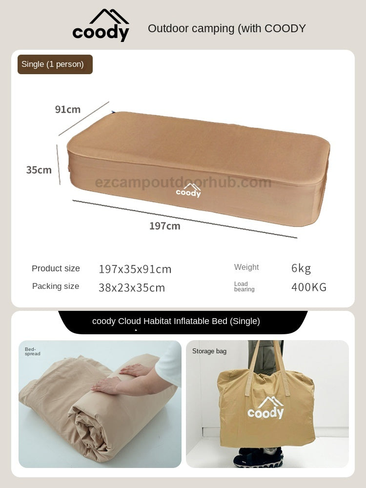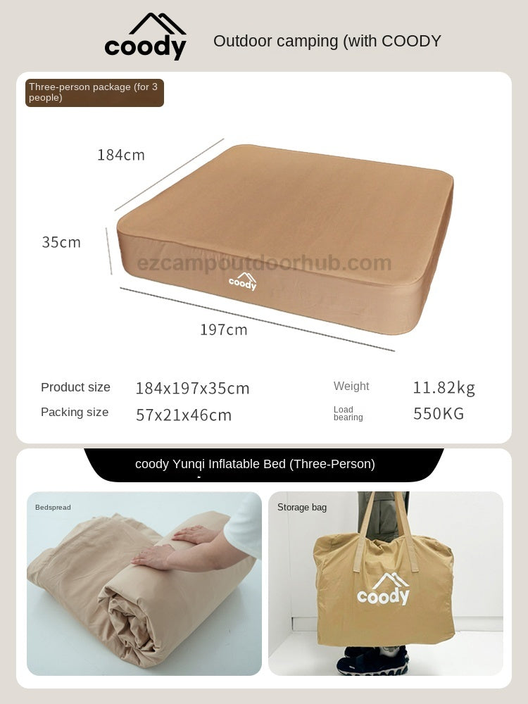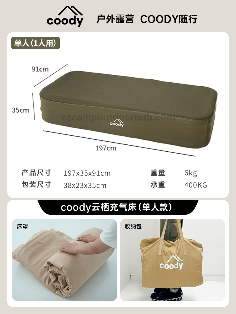 Coody AIR BLOCK Automatic Premium Air Bed Portable Foldable Mattress Pad 35CM High Single Queen King 1-3 Person Built-in Air Pump Outdoor Camping
