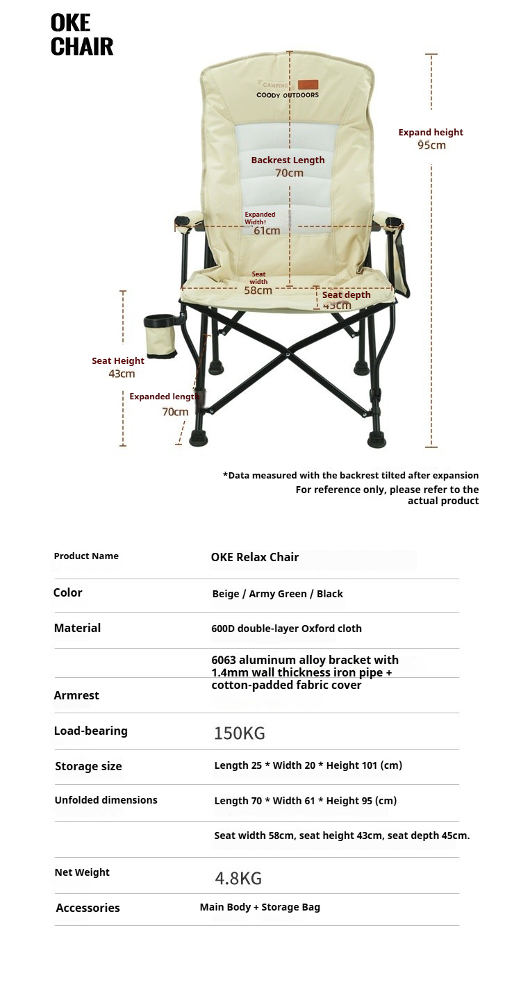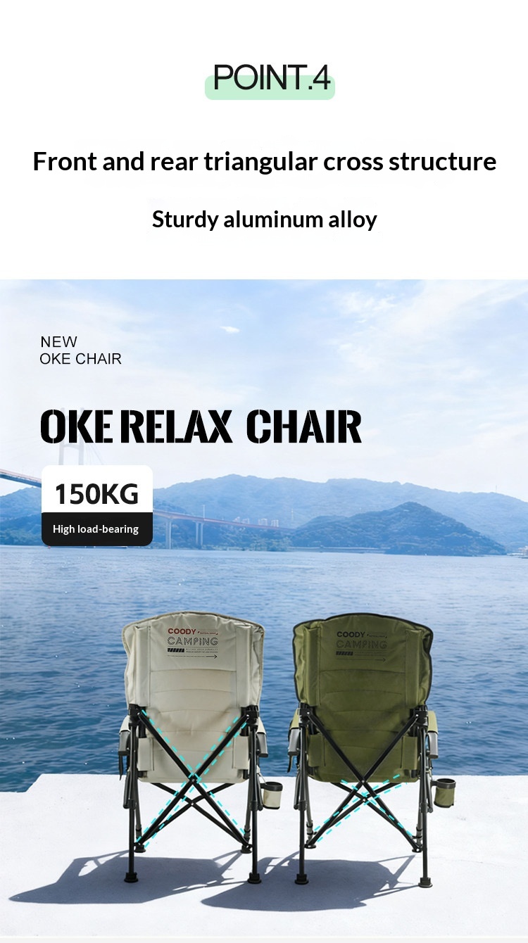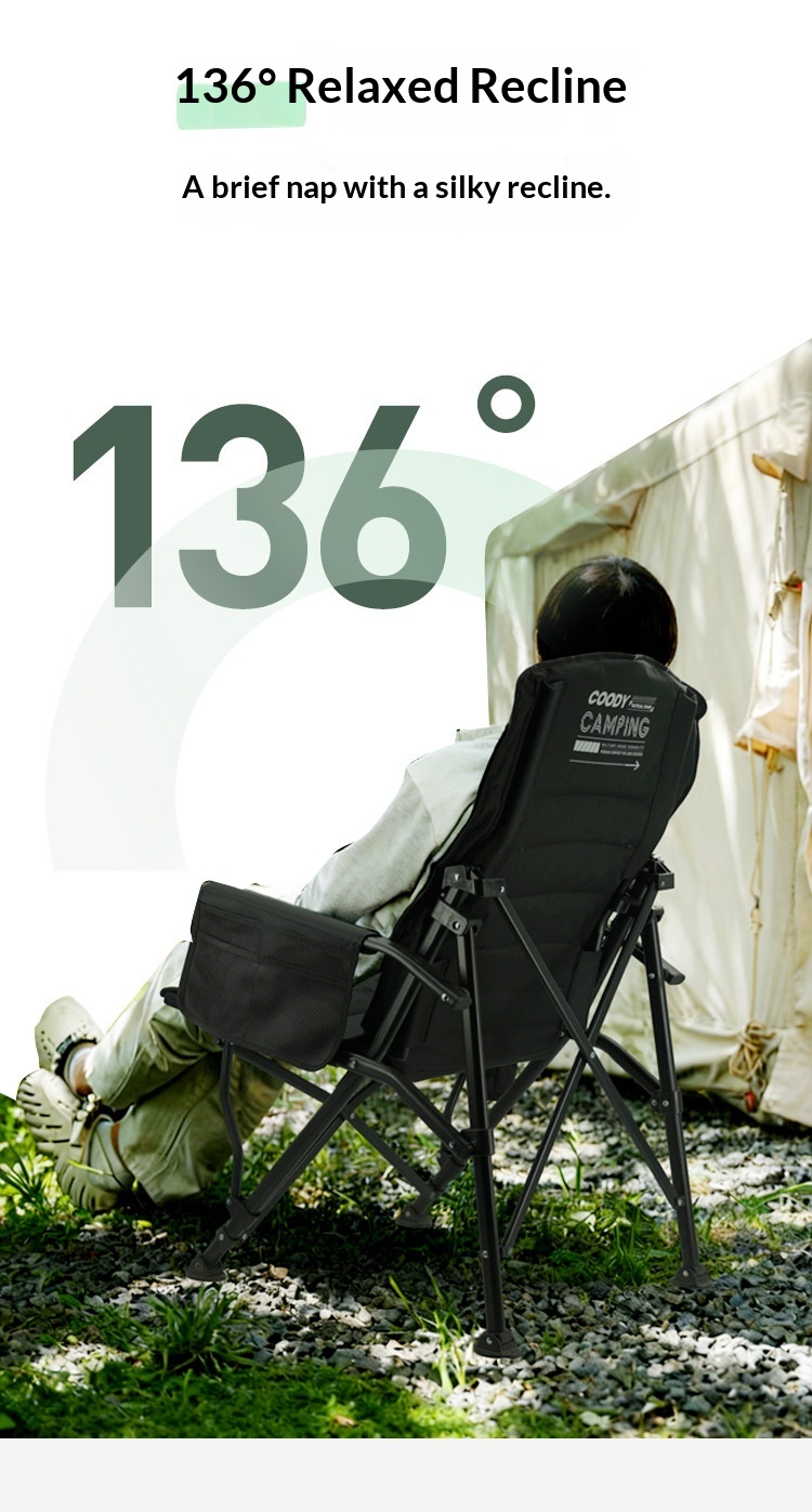 Coody OKE Relax Chair 136° Recliner Leisure Directors Chair Stable Load Bearing 150kg Triangular Cross Structure Design Aluminum Alloy Frame Outdoor