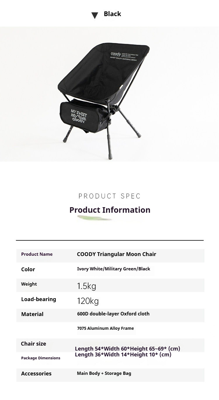 Coody Triangular Moon Chair Portable Ultralight Wide Seat Load Bearing Up To 120kg Max Triangular Bracket 600D Oxford Cloth With Storage Bag Outdoor