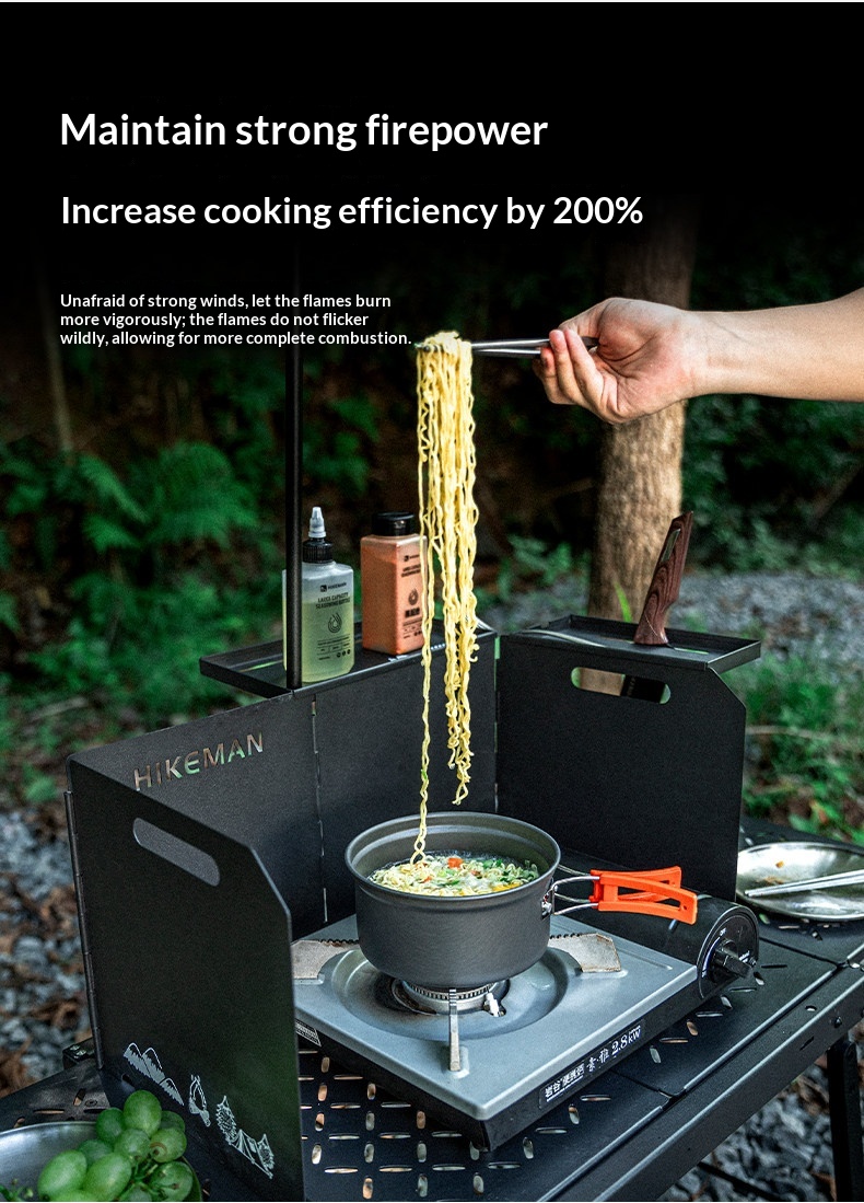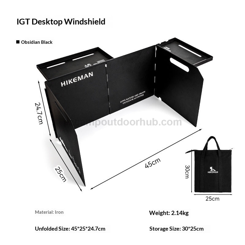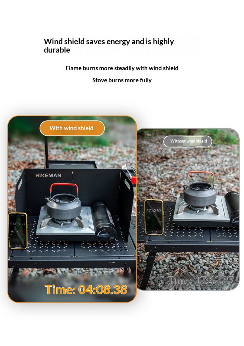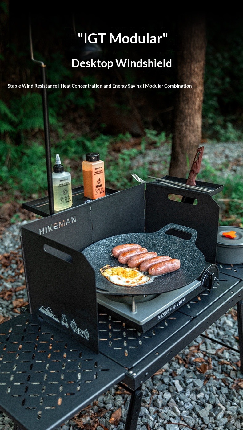 Hikeman Desktop Wind Deflector Windshield Black Steel Iron 2 Unit IGT Compatible Integrated Grill Table Cooking Stove Kitchen Accessories Outdoor Camping