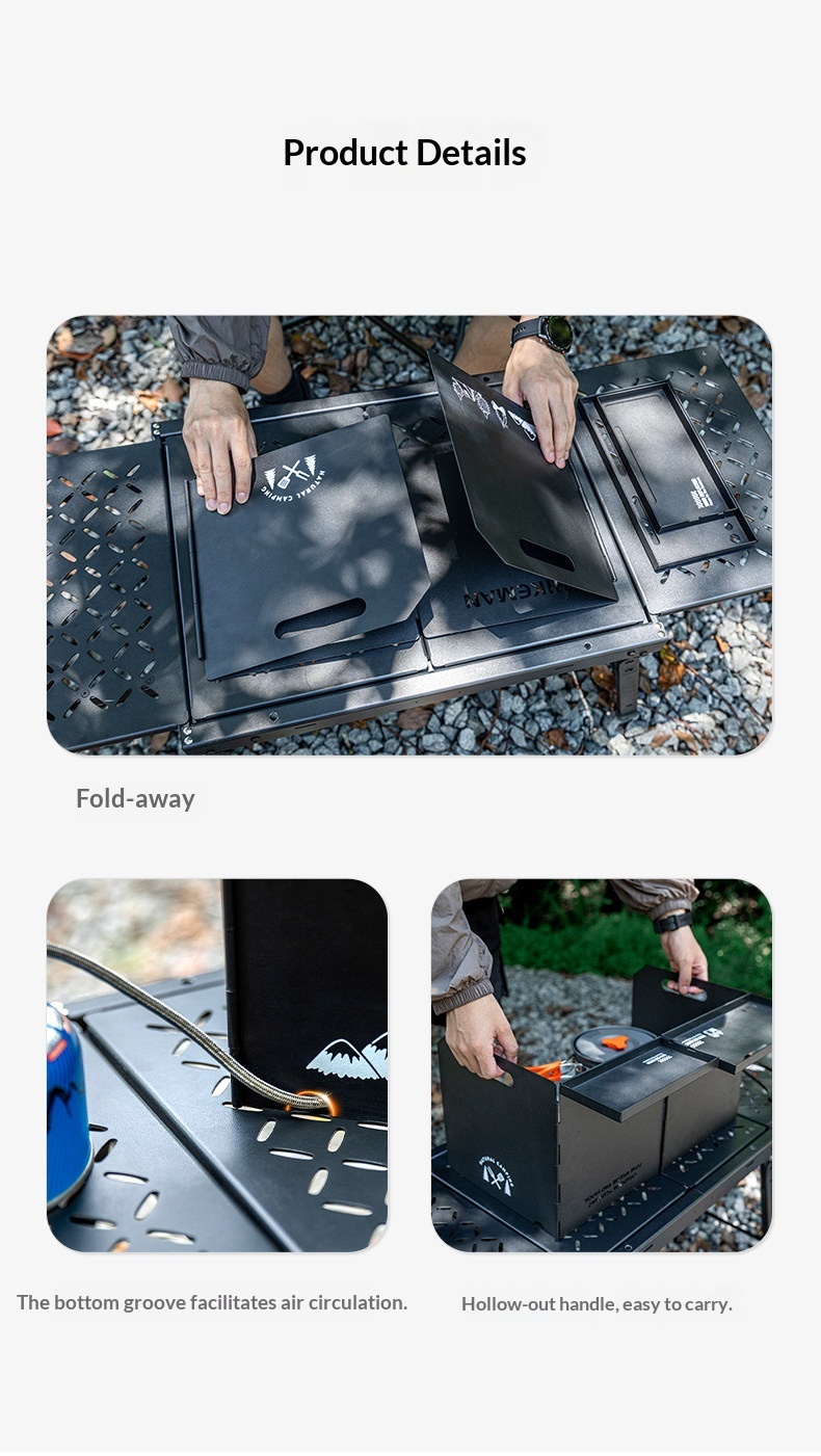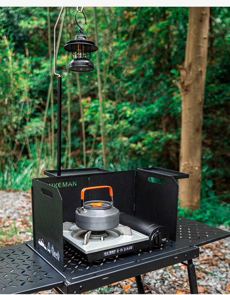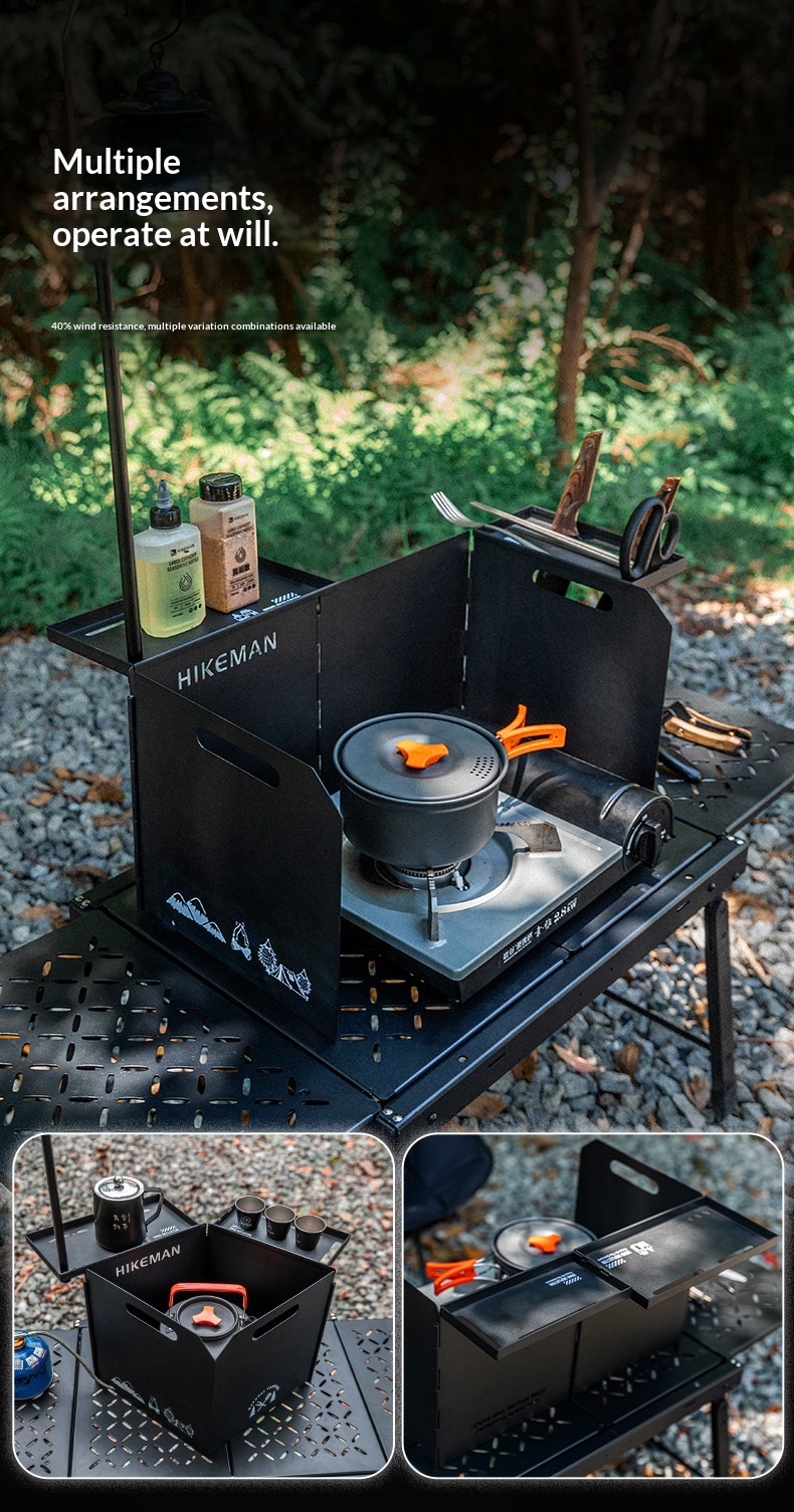 Hikeman Desktop Wind Deflector Windshield Black Steel Iron 2 Unit IGT Compatible Integrated Grill Table Cooking Stove Kitchen Accessories Outdoor Camping
