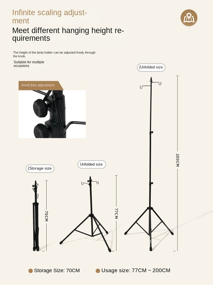 Mobi Garden Black Double Hook Lantern Tripod Pole 77-200cm Adjustable Height Ultralight Aluminum Alloy Outdoor Camping Lamp Holder Bracket Mount Light Hang Post with Storage Bag Mobigarden